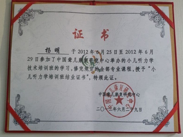 级别:劳动部认证三级级验配师、儿童助听器专家