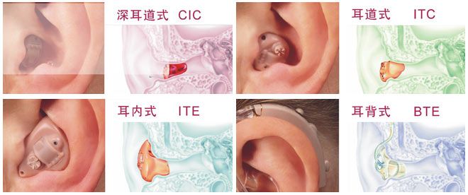 助听器按外形来分可以分为二大类共四种:耳背式和定制式(耳甲腔式、耳道式、深耳道式)。选择一款适合的助听器牵涉到以下听力和非听力因素。